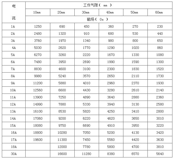 * 剩 磁:≤10mT, 工作氣隙10mm時(shí)